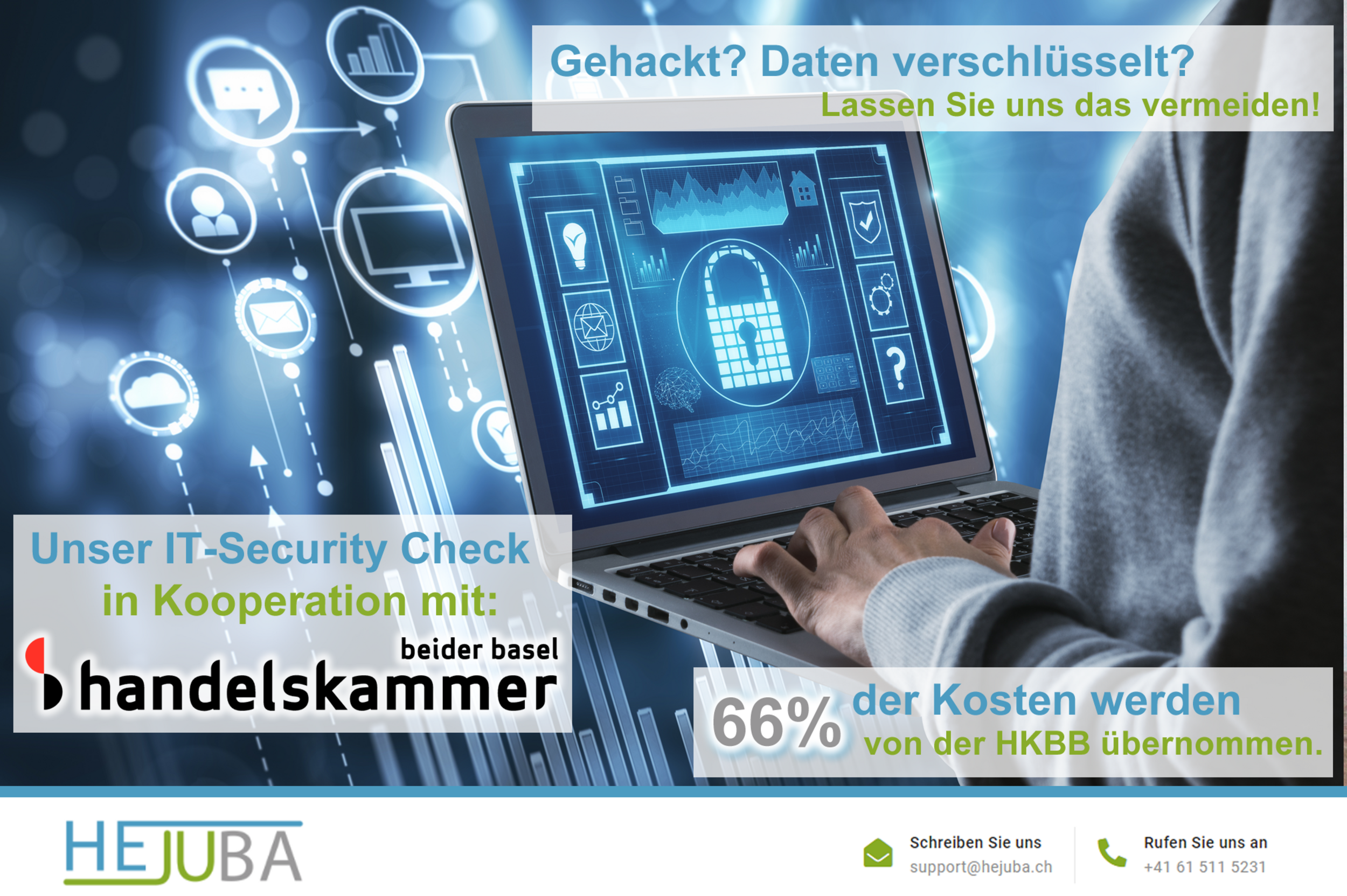 Ab sofort bietet HEJUBA in Kooperation mit der Handelskammer beider Basel einen IT-Security Check an.