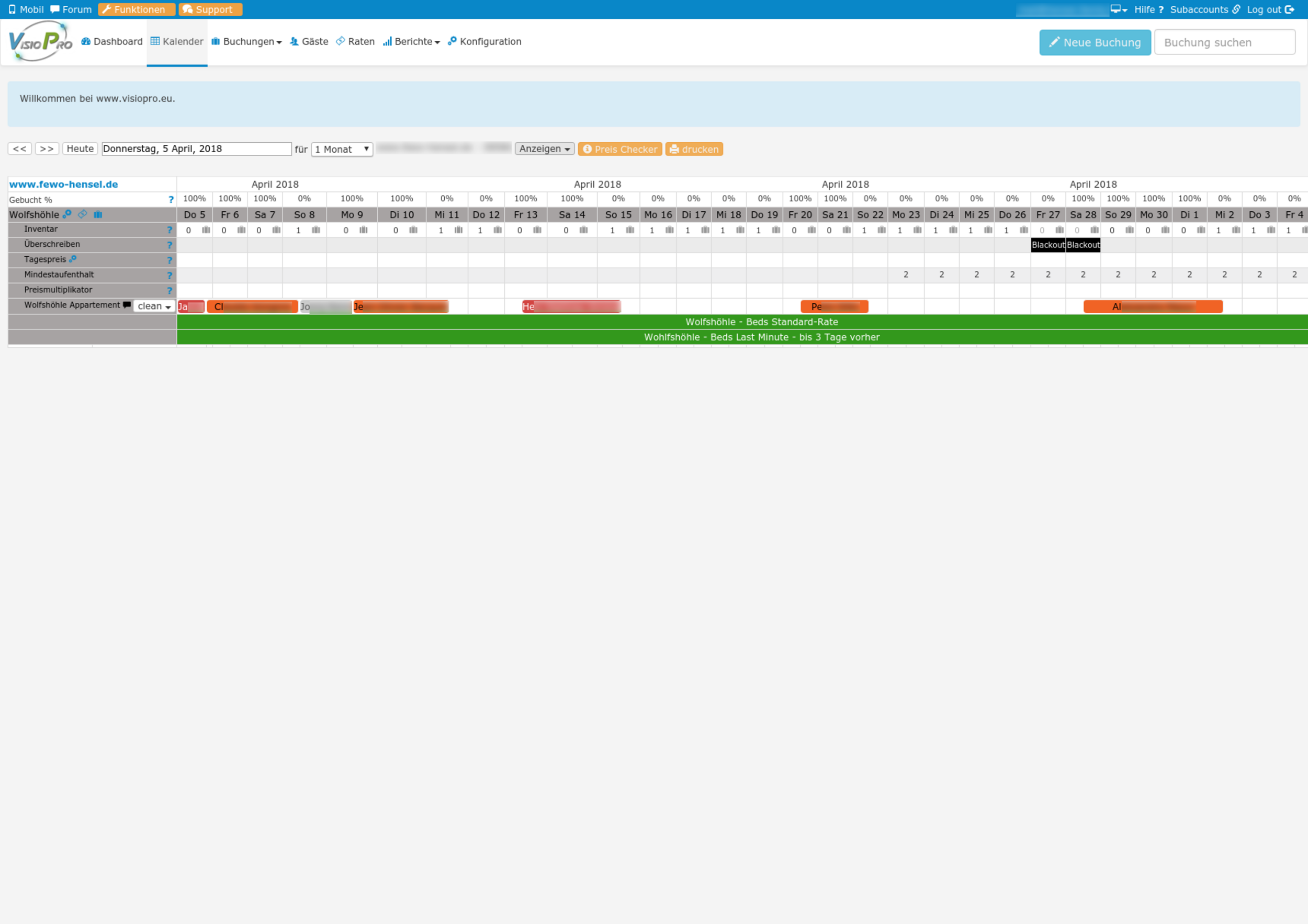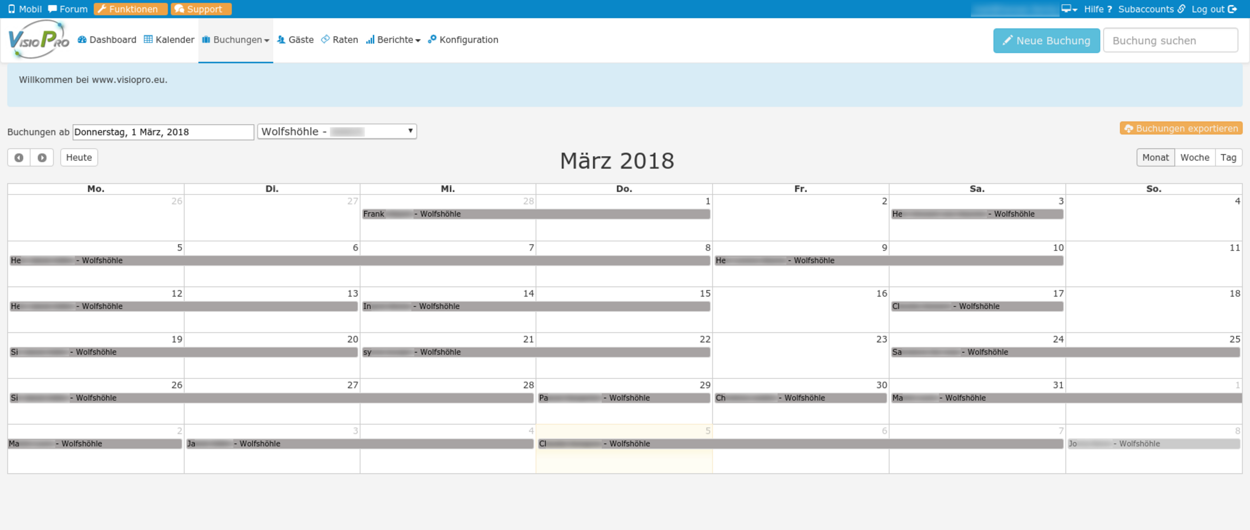 Gleichzeitig werden Doppelbuchungen vermieden und Buchungen und Adressen strukturiert an einem Ort verwaltet und Sie haben eine guten Überblick über die aktuelle Belegung und anstehende Ertragssituation.
