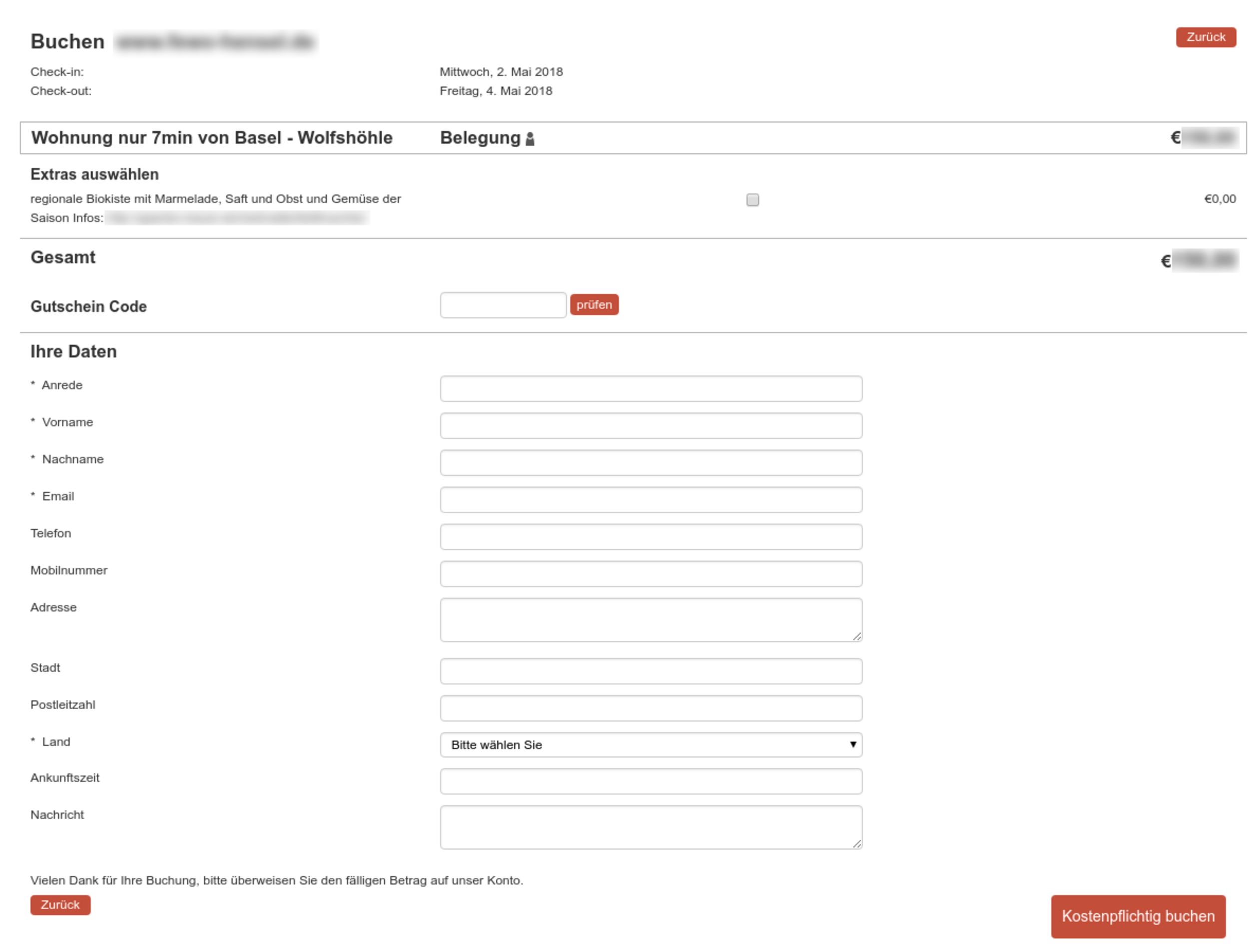 Interessierte Personen (Mail, Telefon) können Sie direkt auf Ihre Website weiterleiten und diese können dort selber Verfügbarkeit und Preise checken und testen und bei Bedarf direkt buchen.